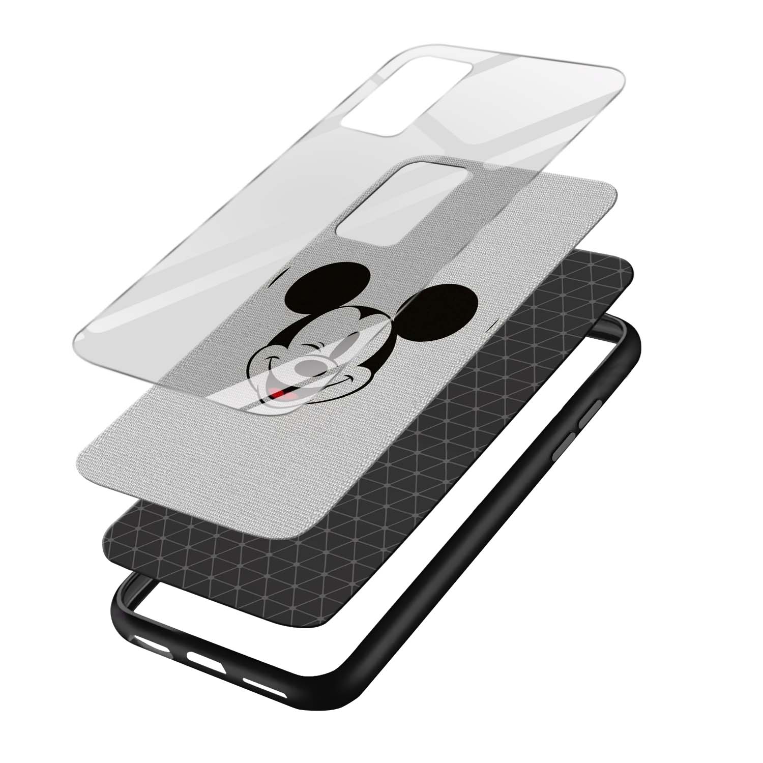 Mickey Mouse Printed Glass Back Phone Case